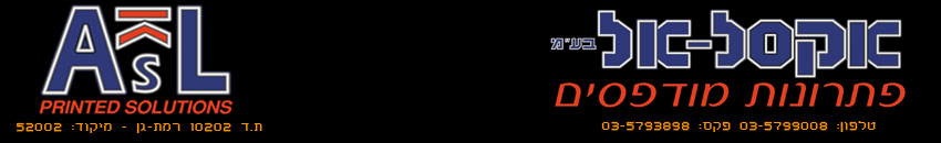 אקסל,aksl,אקסל אל,אקסל-אל,עלונים,קטלוגים,פולדרים,נייר מכתבים,מעטפות,שלטים,אריזות,תפריטים,כרטיסי ביקור,פרוצס,הטבעה,הבלטה,דיו מתנפח,מוצרי פרסום,מדבקות,גלילים,בדיד,כרטיסי חבר ממוחשבים,מגנטים,שטנסים,הדבקות שילוט לרכב,פרוצס,הטבעה,הבלטה,דיו מתנפח,משי,הטבעה,פרוצס,מוצרי פרסום,חולצות,עטים,לוחות שנה,יומנים,גימיקים פרסומיים,נייר,קרטון,פי.וי.סי,ויניל,פוליפרופילן,עץ,הדפסה,אופסט,משי,טמפון,הטבעה,הבלטה,דיגיטלי,פלוטר,AKSL